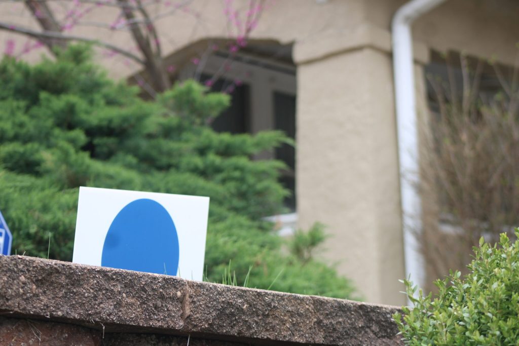 A yard sign that shows the “Blue Dot” in Omaha on April. 12, 2026. (Juan Salinas II/Nebraska Examiner)