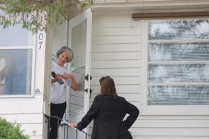 More often than not, over a few hours with the Examiner, she placed a campaign flyer by the door because no one opened it. But when someone answered, she typically left with confirmation that the person was voting for her or deciding between her and another contender, political action committee co-founder Denise Powell. Some asked Rhoades for a yard sign.