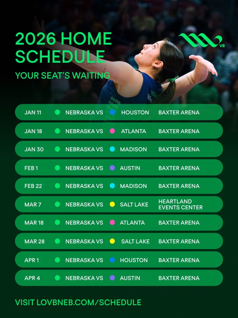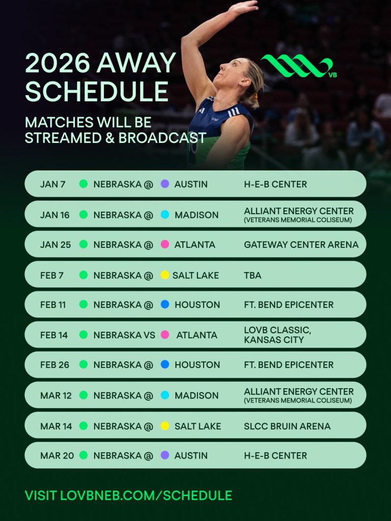 Jordan Larson, Lexi Rodriguez y compañía abrirán la segunda temporada con una revancha de las Finales LOVB 2025 frente a LOVB Austin, el miércoles 7 de enero, en Texas, durante el evento inaugural First Serve. El equipo regresará a Omaha cuatro días después para su debut en casa frente a LOVB Houston, el domingo 11 de enero. Otros encuentros destacados incluyen el enfrentamiento del Día de San Valentín contra LOVB Atlanta en el renovado LOVB Classic en Kansas City, el partido en Grand Island frente a LOVB Salt Lake el sábado 7 de marzo y el cierre de temporada ante LOVB Austin el sábado 4 de abril.