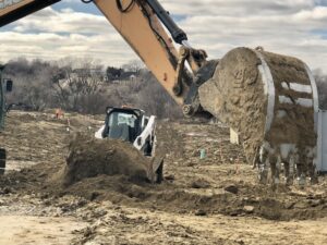Equipo que ayuda a preparar un sitio de desarrollo en Omaha. (Cindy Gonzalez/Nebraska Examiner)