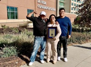 Carlos Godinez, a la izquierda, y su hermano menor Jonathan, junto a su hermana Rose, cuando ella recibió el Premio a la Diversidad de la Nebraska State Bar Association. (Cortesía de la familia Godinez)