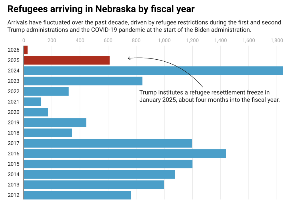 Pero después de la investidura de Trump, el trabajo de reasentamiento de las agencias se detuvo en seco. Durante meses, Nebraska no reasentó a ningún nuevo refugiado, según datos federales.